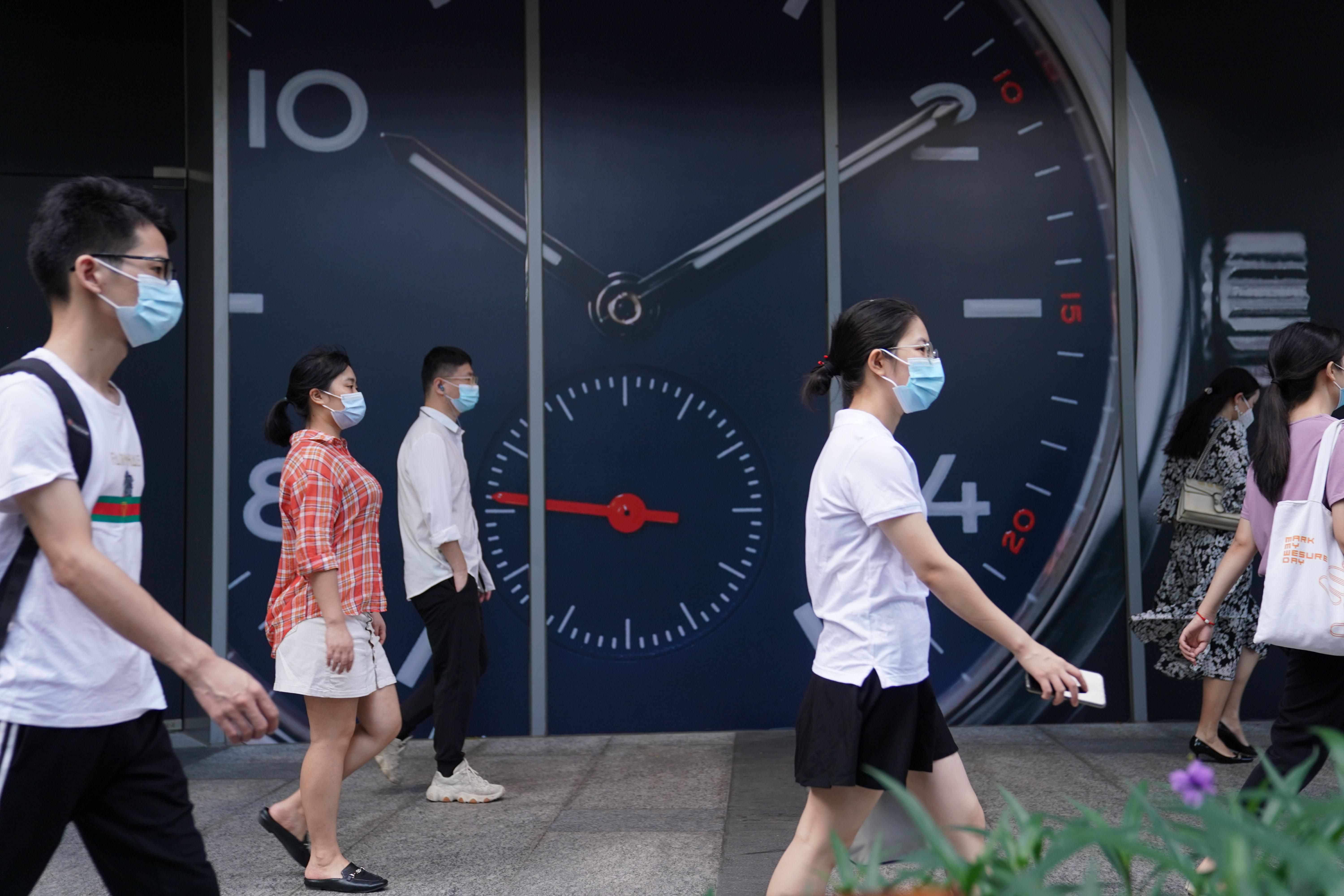 ▲2020年7月24日早晨,深圳前海,年輕人行走在上班路上。
