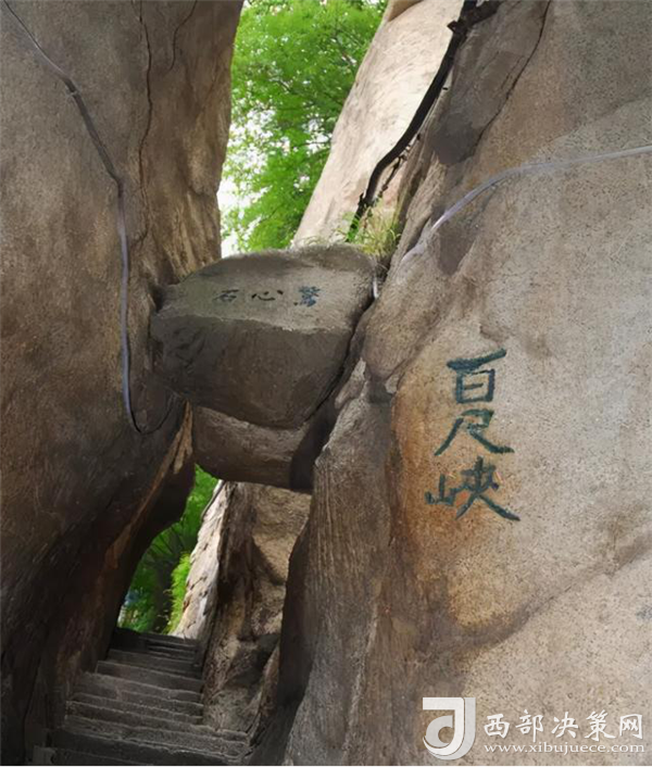 百尺峽,"幢去峽復(fù)來(lái),天險(xiǎn)不可瞬。雖云百尺峽,一尺一千仞。"過(guò)千尺幢向北折即到"百尺峽",它是登華山的第二個(gè)險(xiǎn)境。