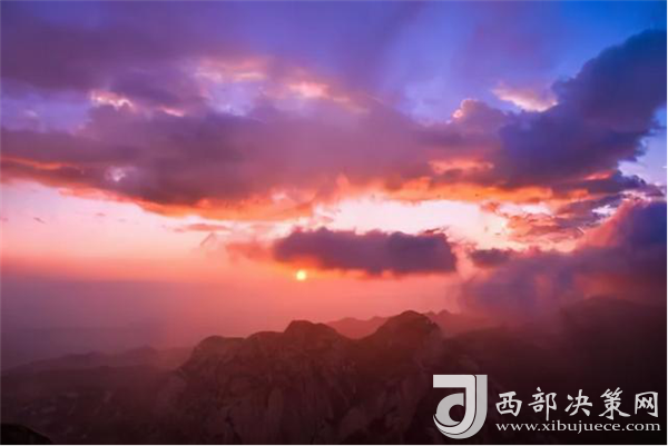 華山日出亦被列為華山自然風(fēng)光中的重要景觀之一。是時(shí),但見夜幕自東方悄然隱退,晨曦初露,漸漸霞光瑰麗,云源奔涌。瞬間,一輪火球噴薄而出,繼而光芒四射,氣象萬千,整個(gè)世界大放光明,游人身心為之一振。待云霧散盡,蒼松翠柏,則更加清麗悅目,美妙神奇。故而,游名山者必登華山,登華山者必觀日。