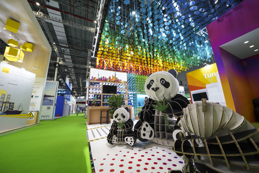 △在國(guó)家會(huì)展中心(上海)西入口處,吉祥物熊貓“進(jìn)寶”歡迎進(jìn)博會(huì)各國(guó)嘉賓。