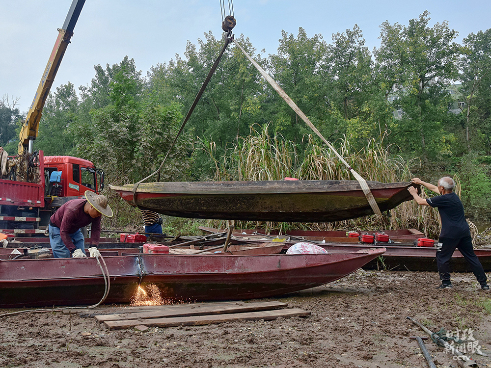 △“長江禁漁”實施后,四川內(nèi)江東興區(qū)集中拆解漁船,352名漁民全部上岸,轉產(chǎn)轉業(yè)。