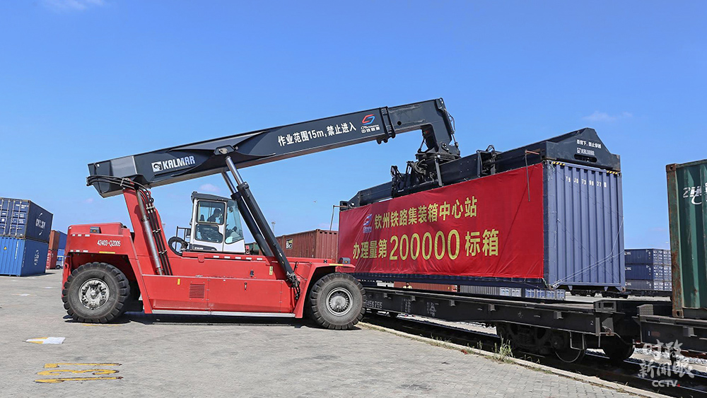 △今年,西部陸海新通道(欽州港)海鐵聯(lián)運集裝箱辦理量已突破20萬標(biāo)箱,同比增幅達110%。欽州港是海運、鐵路、公路運輸無縫銜接的重要樞紐站。