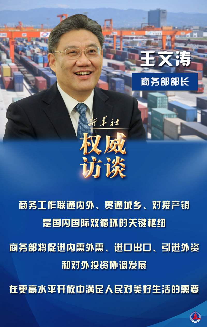 新的一年,促消費(fèi)有何新招?如何繼續(xù)穩(wěn)住外貿(mào)外資基本盤(pán)?自貿(mào)區(qū)(港)建設(shè)有哪些新動(dòng)作?自貿(mào)“朋友圈”如何構(gòu)建?新華社記者采訪了商務(wù)部部長(zhǎng)王文濤。