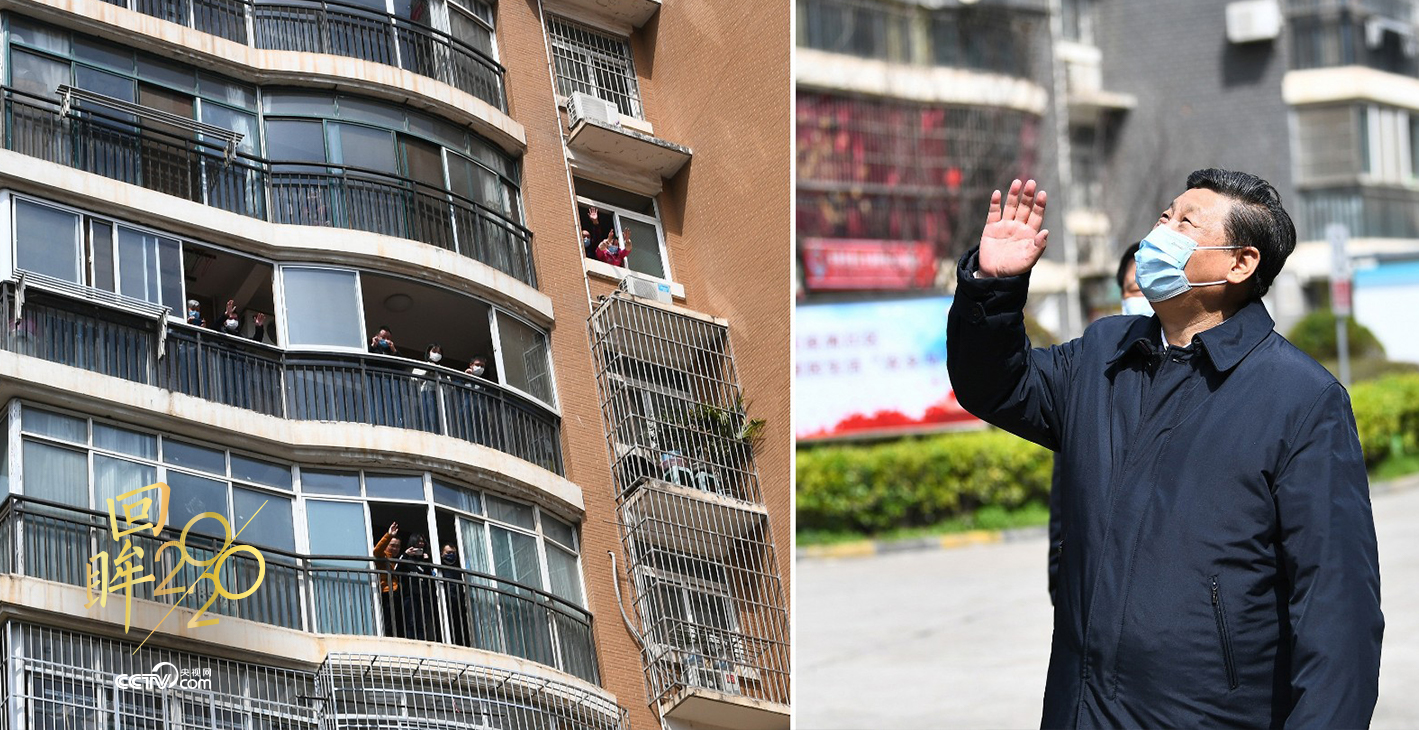 樓上,居家隔離的群眾望向窗外,有的搖著國旗高呼:“中國加油!武漢加油!”樓下,習(xí)近平總書記不時駐足,微笑著向大家揮手致意:“大家一起加油,再堅持一下!”目光中飽含關(guān)切。