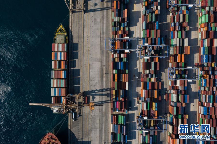 這是2019年9月6日航拍的停靠在希臘比雷埃夫斯港集裝箱碼頭的中遠(yuǎn)海運銀河輪。新華社發(fā)(萊夫特里斯·帕察里斯攝)