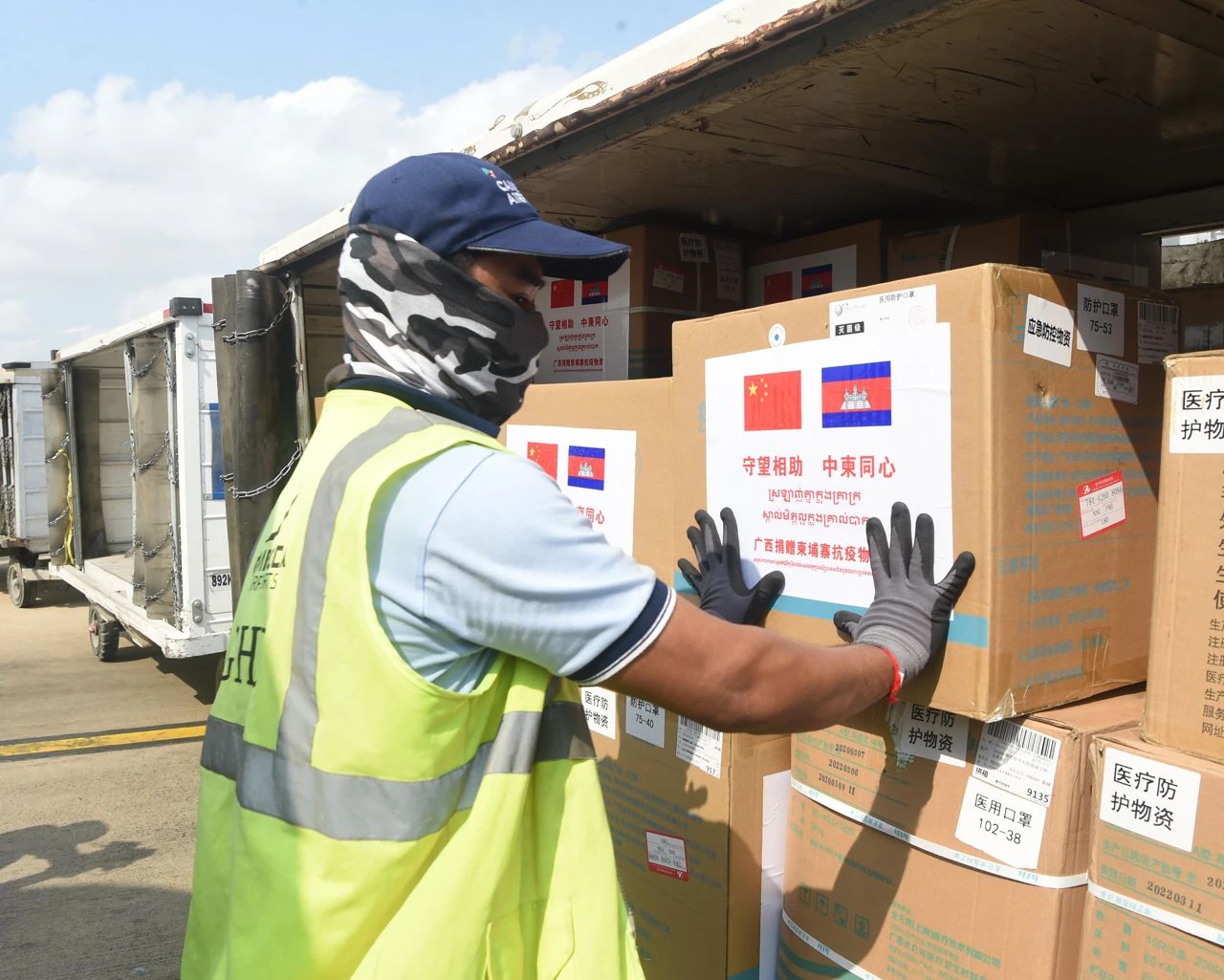 △2020年3月23日,一架搭載7名來(lái)自廣西壯族自治區(qū)醫(yī)療專家和一批防疫醫(yī)療物資的中國(guó)南航包機(jī)降落在柬埔寨首都金邊國(guó)際機(jī)場(chǎng)。