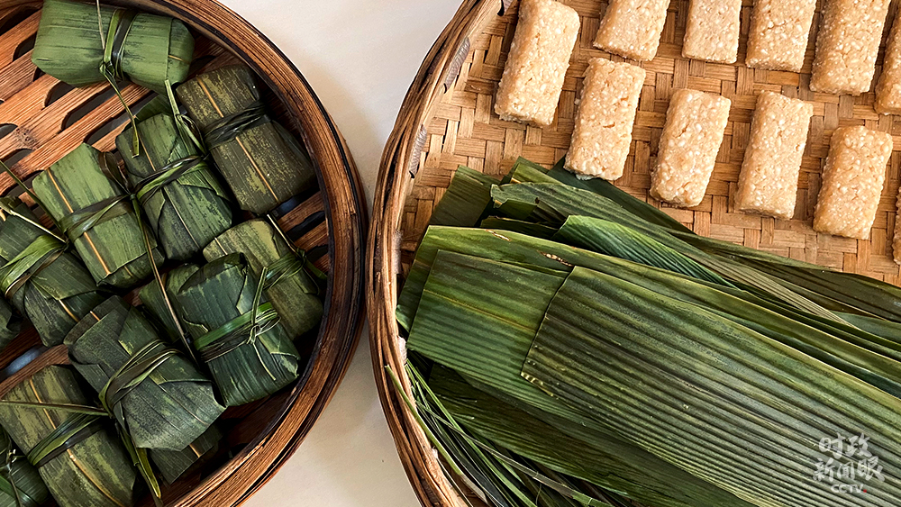 △趙玉學一家正在做黃粑。(總臺央視記者王哈男拍攝)