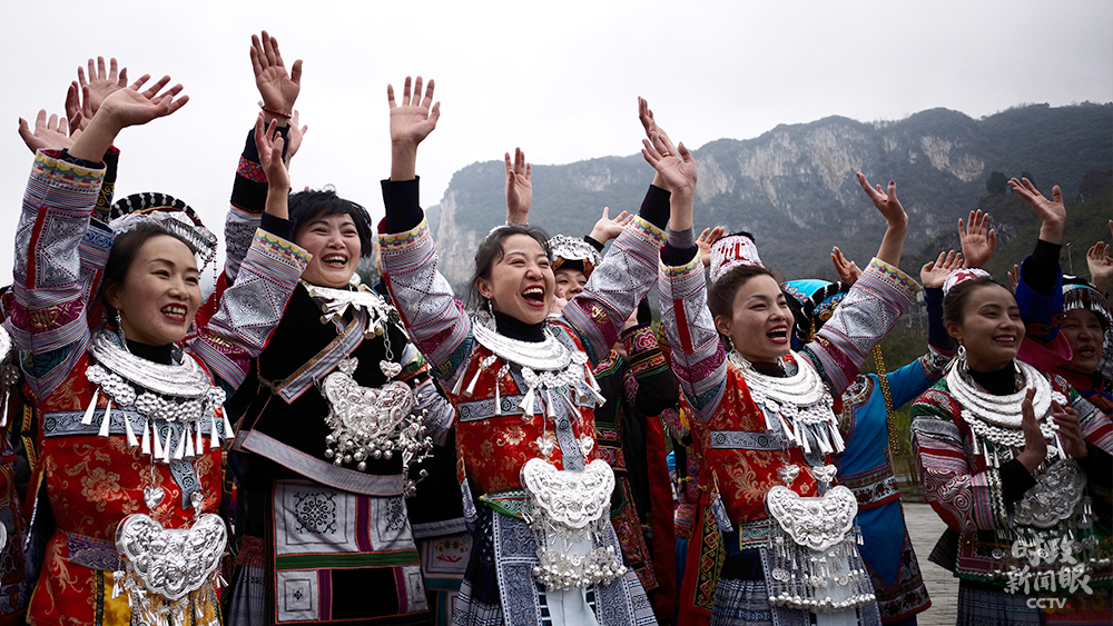△廣場上熱烈歡迎總書記到訪的苗寨村民(總臺央視記者張宇、彭漢明、王哈男拍攝)
