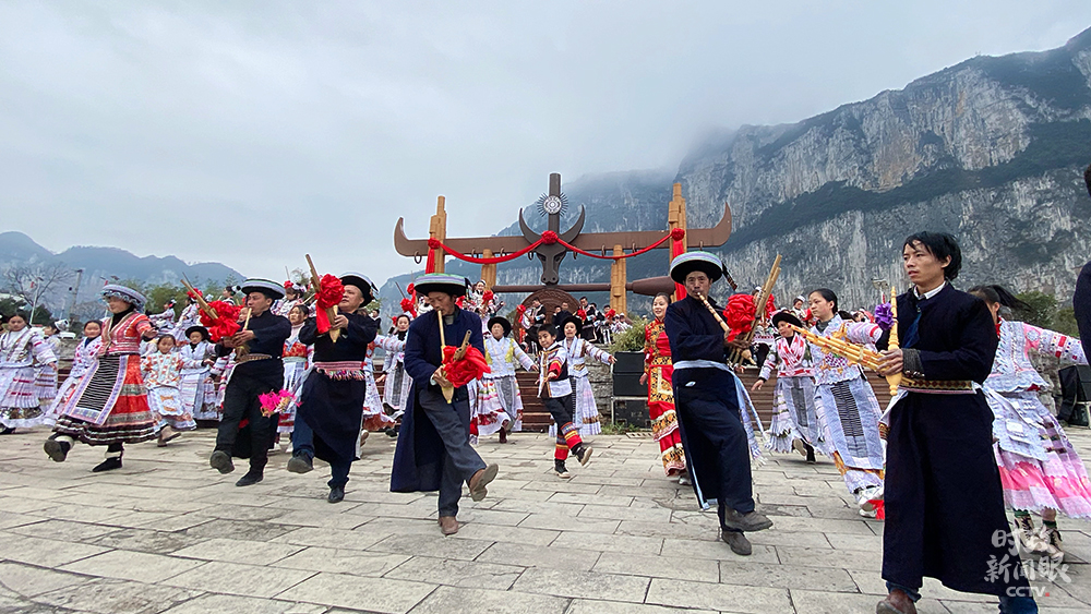 化屋村處于烏江源百里畫廊核心景區(qū)。除了非遺手藝,鄉(xiāng)村旅游也是化屋村的支柱產(chǎn)業(yè)。在村文化廣場,習近平同參加少數(shù)民族春節(jié)民俗活動的群眾親切交流,并向全國各族人民致以新春祝福。