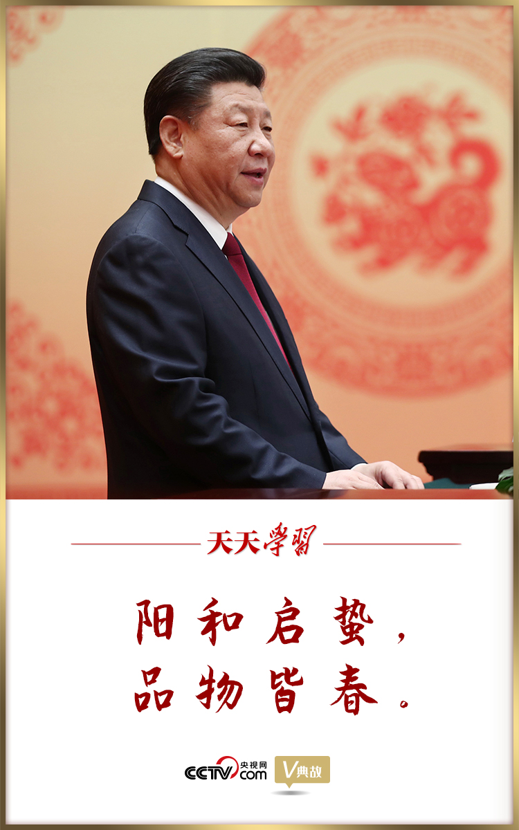 2018年,祖國(guó)大地春來早,立春剛過,春節(jié)將臨。在春節(jié)團(tuán)拜會(huì)上,習(xí)近平總書記在講話開場(chǎng)即引用“陽和啟蟄,品物皆春”這一名句,描繪了祖國(guó)大地春風(fēng)拂面、萬象更新的景象。