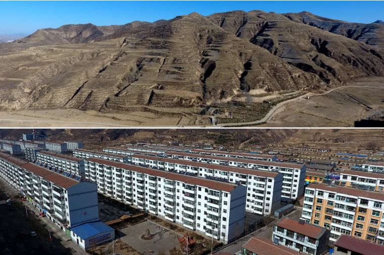 ↑上圖:已被拆除復墾的山西省岢嵐縣趙家洼村(2018年2月12日攝);下圖:岢嵐縣廣惠園新村一角(無人機照片,2018年2月13日攝)。趙家洼村曾是呂梁山集中連片特困地區(qū)的深度貧困村,村里只有900畝貧瘠的坡上旱地,生存條件十分惡劣。2017年,趙家洼村易地搬遷全部完成。位于岢嵐縣城的廣惠園移民新區(qū),成為村民們的新家。這里學校、幼兒園、醫(yī)院、休閑小廣場應有盡有,百姓們的日子越過越敞亮。