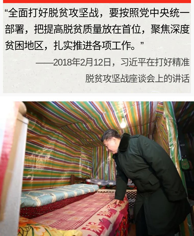 ↑2018年2月10日至13日,在中華民族傳統(tǒng)節(jié)日農歷春節(jié)來臨之際,習近平來到四川考察調研,看望慰問各族干部群眾,向全國各族人民致以美好的新春祝福。這是2月11日上午,習近平在涼山彝族自治州昭覺縣三岔河鄉(xiāng)三河村貧困戶吉好也求家中看望。