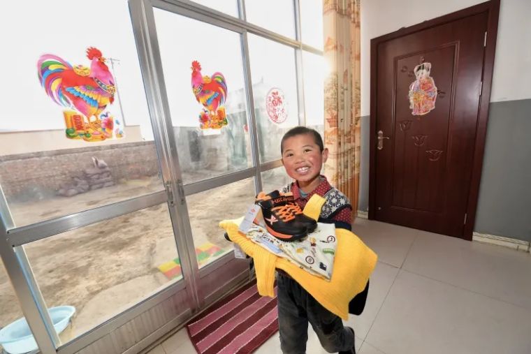 ↑在青海海東市互助縣五十鎮(zhèn)班彥新村,剛剛遷入新居的兒童手捧新買的衣服(2017年1月27日攝)。班彥新村129戶村民原來居住在海拔2800米的山上。脫貧攻堅精準識別時,這個村貧困發(fā)生率高達57%。2016年,受益于易地扶貧搬遷政策,村民們整體搬遷到山下統(tǒng)一規(guī)劃、統(tǒng)一建設的新村。新村水、電、天然氣等一應俱全;農家樂、扶貧車間等政策的落實,也讓移民們的生活有了保障。