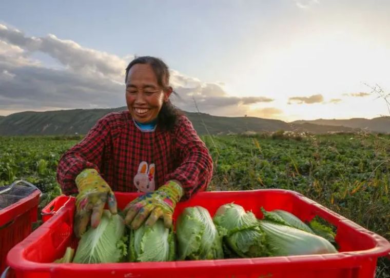 ↑2020年9月7日,農民在寧夏回族自治區(qū)西吉縣硝河鄉(xiāng)高原村紅祥蔬菜種植專業(yè)合作社蔬菜種植基地收獲白菜。2020年11月,寧夏回族自治區(qū)政府正式批復同意西吉縣退出貧困縣序列。至此寧夏全區(qū)9個貧困縣(區(qū))全部實現(xiàn)脫貧摘帽。