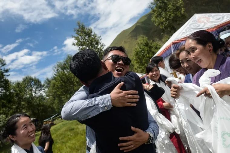 ↑在西藏拉薩市達孜區(qū),北京大學腫瘤醫(yī)院的援藏醫(yī)生袁燦(戴墨鏡者)與送別的藏族同事?lián)肀В?020年8月1日攝)。2015年以來,北京援藏醫(yī)療隊以“組團式”醫(yī)療援藏為抓手,幫助拉薩市人民醫(yī)院新建了急診科、重癥醫(yī)學科等12個學科,推動當?shù)蒯t(yī)療事業(yè)發(fā)生格局性變化。如今,“組團式”醫(yī)療援助已經(jīng)成為北京在助力脫貧攻堅戰(zhàn)中一張閃亮的名片。