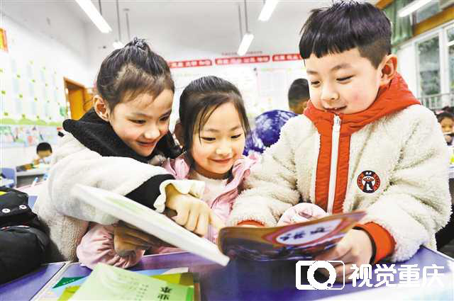 2月28日,重慶渝中區(qū)中華路小學(xué)學(xué)生興致勃勃地翻閱新書。記者 盧越 攝