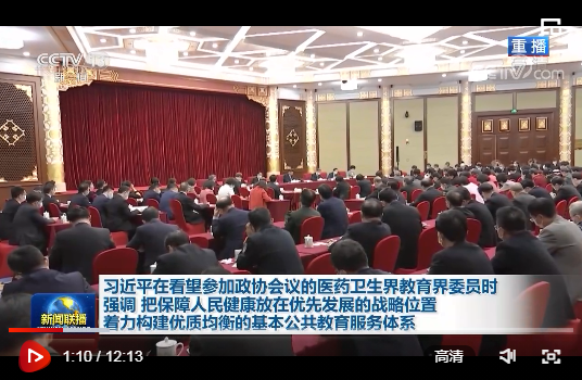 中共中央總書記、國家主席、中央軍委主席習(xí)近平3月6日下午看望了參加全國政協(xié)十三屆四次會議的醫(yī)藥衛(wèi)生界、教育界委員,并參加聯(lián)組會,聽取意見和建議。他強(qiáng)調(diào),要把保障人民健康放在優(yōu)先發(fā)展的戰(zhàn)略位置,堅(jiān)持基本醫(yī)療衛(wèi)生事業(yè)的公益性,聚焦影響人民健康的重大疾病和主要問題,加快實(shí)施健康中國行動,織牢國家公共衛(wèi)生防護(hù)網(wǎng),推動公立醫(yī)院高質(zhì)量發(fā)展,為人民提供全方位全周期健康服務(wù)。要全面貫徹黨的教育方針,堅(jiān)持社會主義辦學(xué)方向,堅(jiān)持教育公益性原則,著力構(gòu)建優(yōu)質(zhì)均衡的基本公共教育服務(wù)體系,建設(shè)高質(zhì)量教育體系,辦好人民滿意的教育,培養(yǎng)德智體美勞全面發(fā)展的社會主義建設(shè)者和接班人。