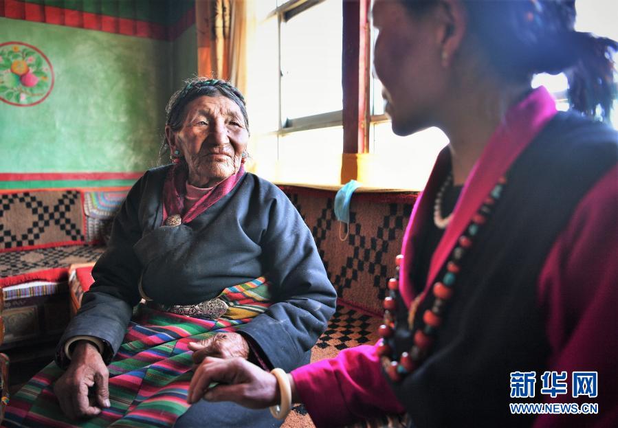 巴桑和女兒在聊天(2月27日攝)。新華社記者 孫非 攝