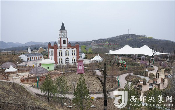 站在南溝村生態(tài)園最高處的觀景臺(tái)俯瞰景區(qū),紅色小樓錯(cuò)落有序、旁邊水庫(kù)綠水盈盈、遠(yuǎn)處山峰層層疊疊、成片的蘋(píng)果園劃出整齊的曲線,五顏六色的游樂(lè)設(shè)施裝點(diǎn)著黃土高原,讓人驚嘆山溝溝里竟然還有這樣養(yǎng)眼的好去處。
