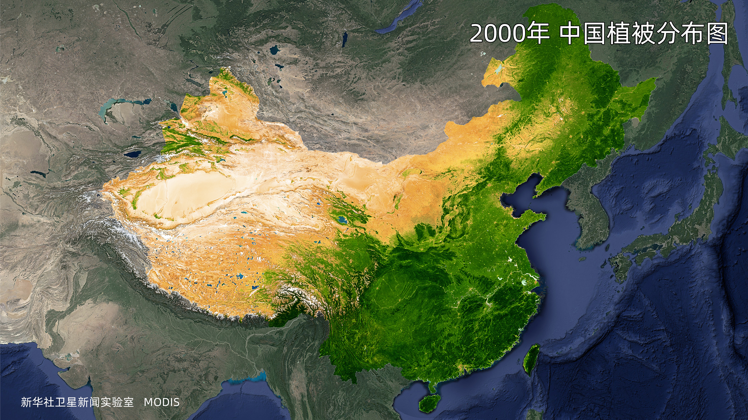 2000年中國植被分布圖。(數(shù)據(jù)來源:MODIS)