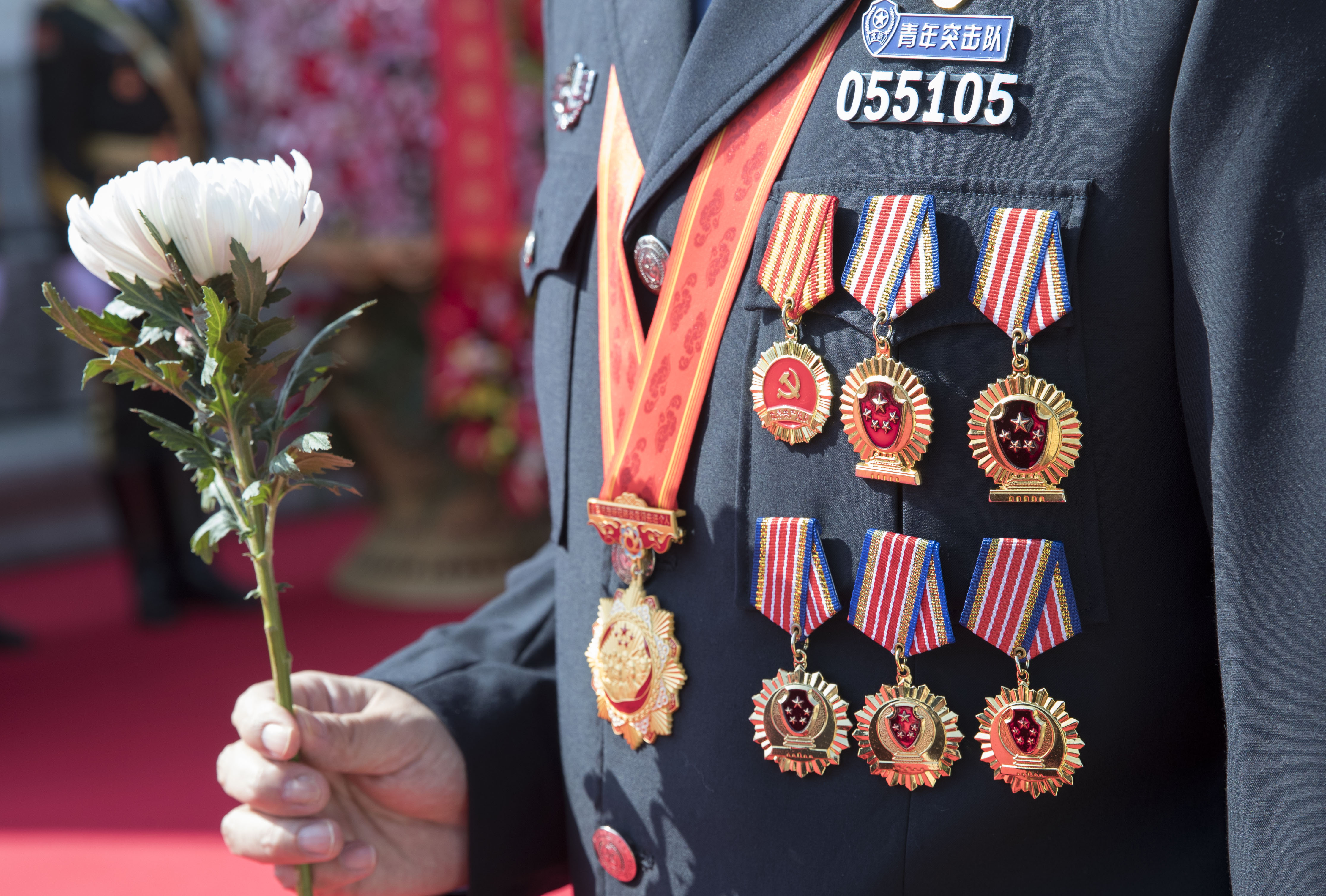 ↑2019年4月4日,學(xué)生代表在北京中國人民抗日戰(zhàn)爭紀念館向抗戰(zhàn)英烈獻花。新華社記者 張晨霖 攝