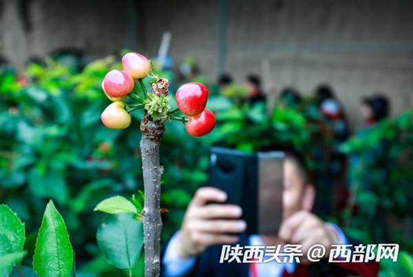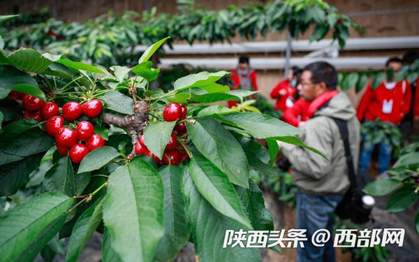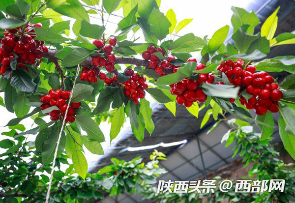 在櫻桃棚內(nèi),紅色的櫻桃一簇一簇簇?fù)碓跇渖?,在綠油油的樹葉間顯得嬌艷欲滴。路寶告訴記者,子長的櫻桃可以趕在其他產(chǎn)地的櫻桃未上市前售賣,因此市場行情好,加上保存期長,適合現(xiàn)代物流的發(fā)展,從而產(chǎn)生了比較好的收益。“我們這個櫻桃可以在其他櫻桃還沒有上市的時候,借助現(xiàn)代物流賣到全國各地,甚至可以賣到櫻桃的主產(chǎn)區(qū)去。”