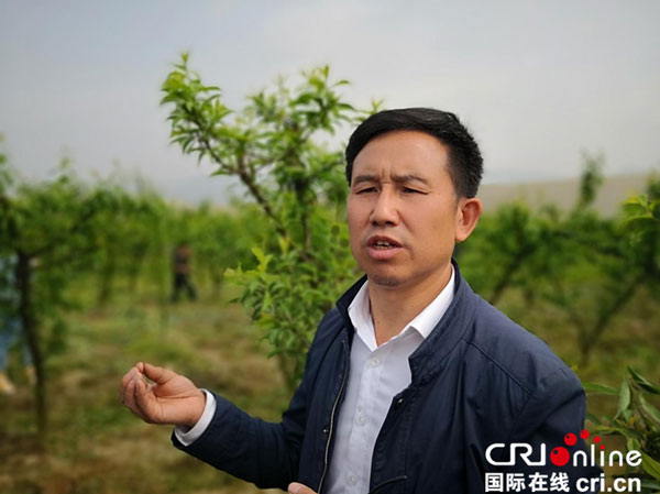 金葉騰種植基地負責(zé)人葉友誼在果園內(nèi)介紹情況 攝影:黎萌