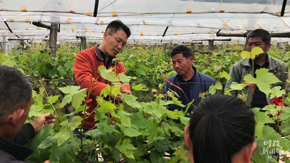 △鄭吉祥(左二)是桂林市農(nóng)業(yè)農(nóng)村局技術(shù)員,當(dāng)天他在葡萄園為總書記作介紹。(總臺(tái)央視記者許達(dá)拍攝)