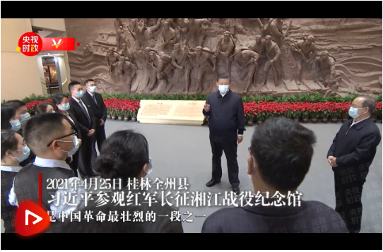 4月25日上午,習(xí)近平首先來到桂林市全州縣才灣鎮(zhèn),考察紅軍長(zhǎng)征湘江戰(zhàn)役紀(jì)念園。