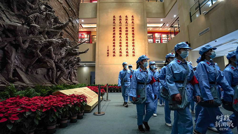 △紅軍長征湘江戰(zhàn)役紀念館內,參加“紅色教育”的學生們。(總臺國廣記者李晉拍攝)