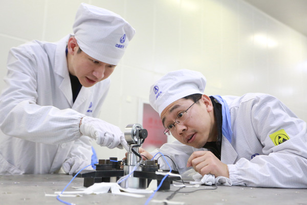 △中國航天科技集團(tuán)公司的青年科研人員在做產(chǎn)品試驗。