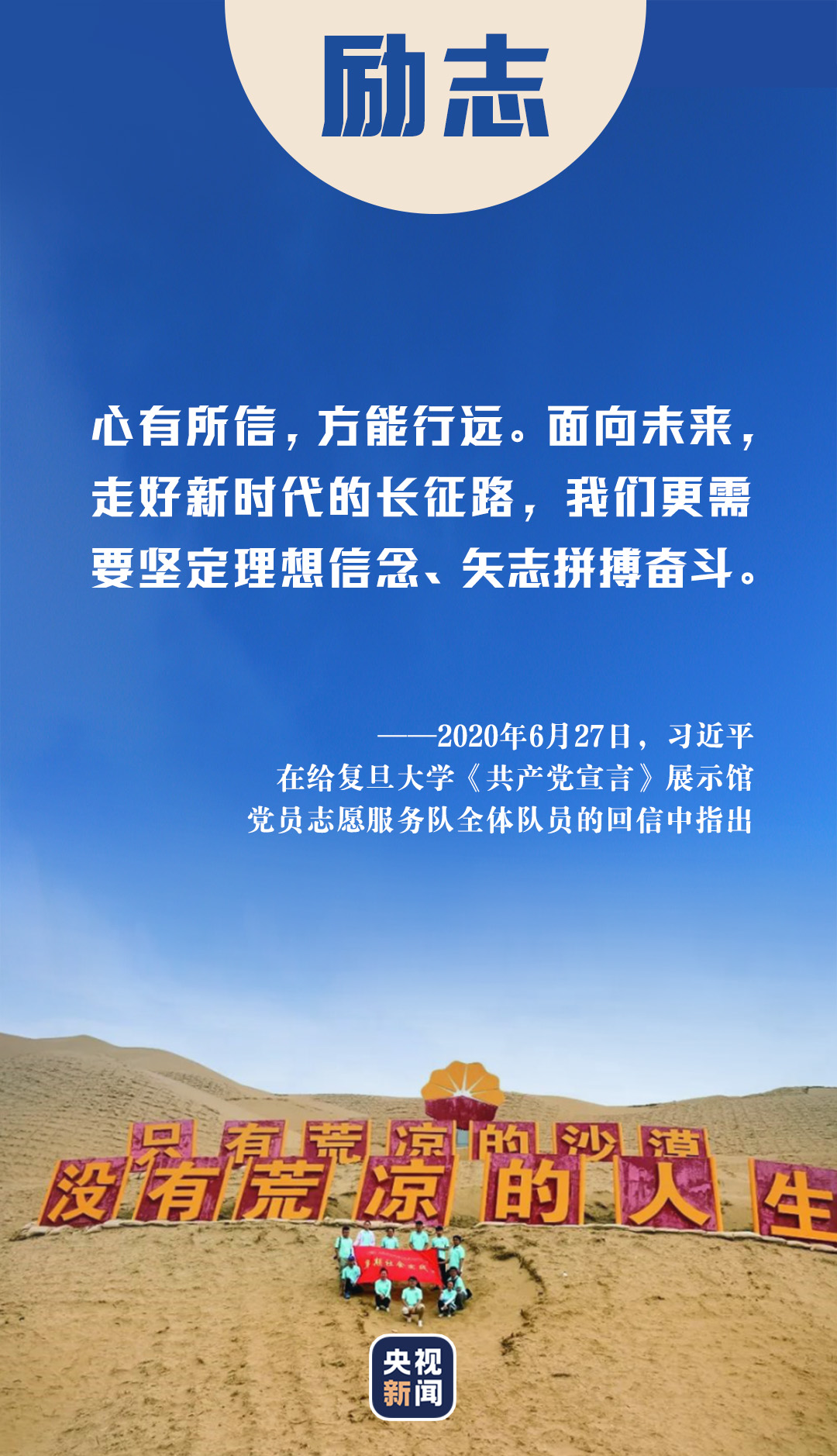 “青年最富有朝氣、最富有夢想”“好兒女志在四方,有志者奮斗無悔”“中華民族偉大復(fù)興終將在廣大青年的接力奮斗中變?yōu)楝F(xiàn)實”......習(xí)近平總書記非常重視青年工作,常鼓勵青年追求夢想、努力奮斗。諄諄良言、殷殷囑托,點燃廣大青年的奮斗熱情,用實際行動唱好青春之歌。