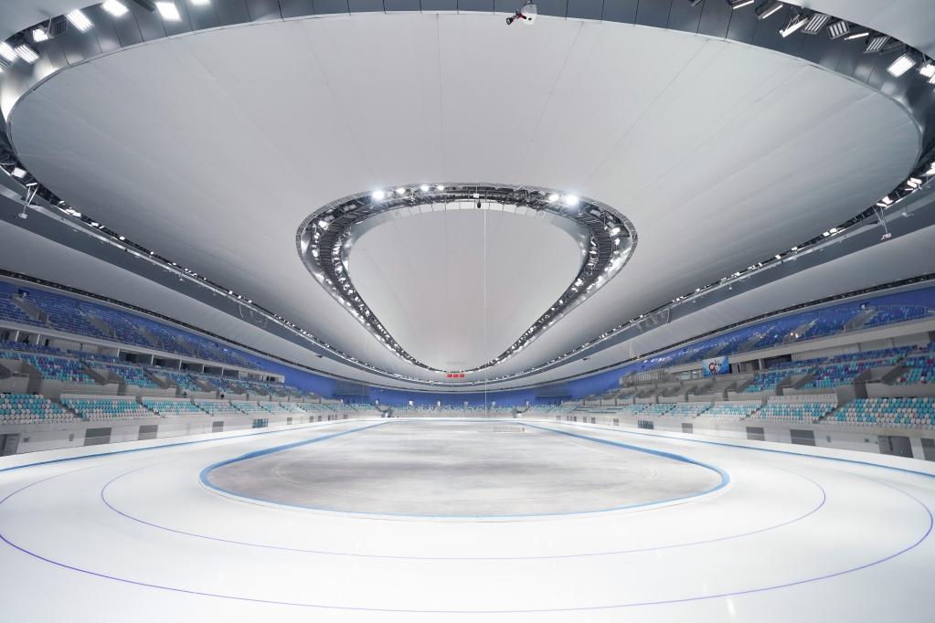 這是2021年1月22日拍攝的首次制冰完成后的國家速滑館內(nèi)景。新華社記者 鞠煥宗 攝