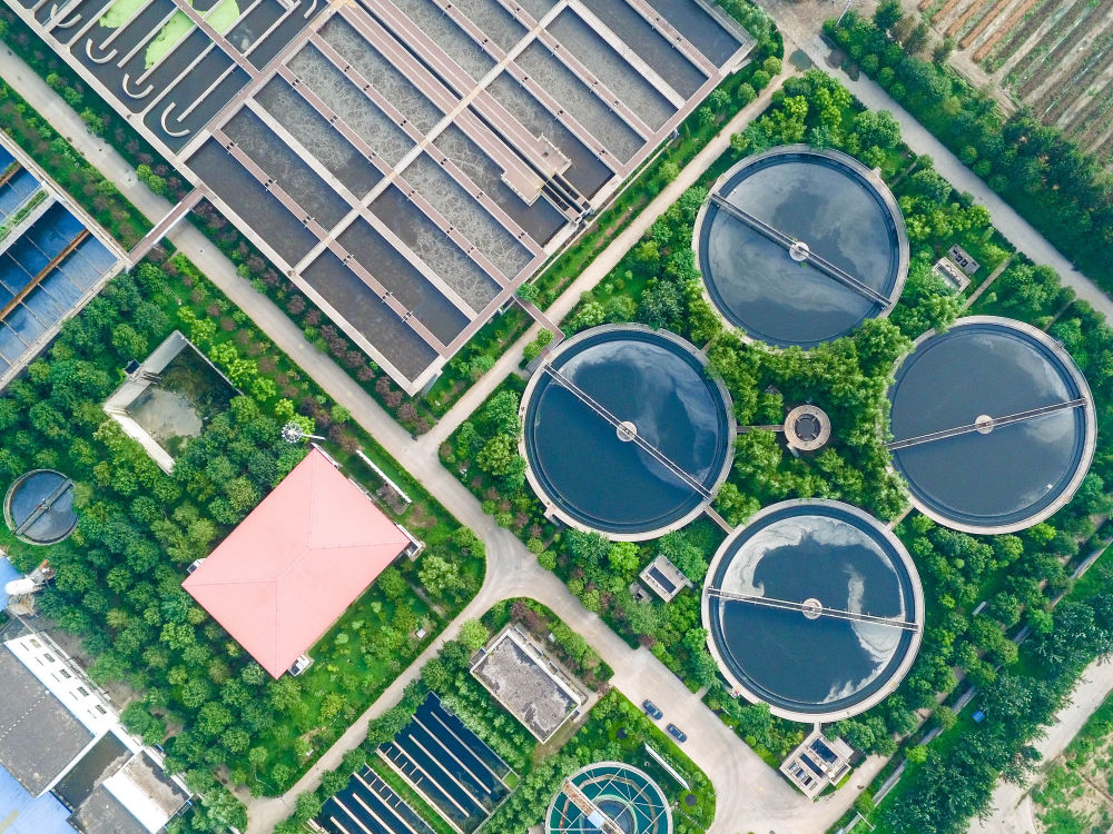 ↑在山東省鄒平縣,污水經(jīng)城市污水處理廠處理,成為當(dāng)?shù)貪竦毓珗@的水源(無人機(jī)照片,2016年7月26日攝)。