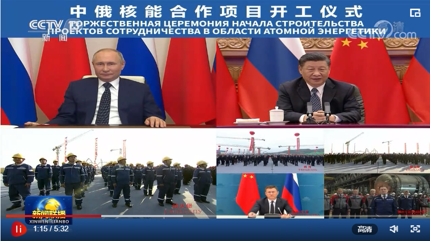 聯(lián)播+“今年是《中俄睦鄰友好合作條約》簽署20周年。我同普京總統(tǒng)商定,將在更高水平、更廣領(lǐng)域、更深層次推進(jìn)雙邊關(guān)系向前發(fā)展。”5月19日,習(xí)近平主席在北京通過(guò)視頻連線,同俄羅斯總統(tǒng)普京共同見(jiàn)證兩國(guó)核能合作項(xiàng)目——田灣核電站和徐大堡核電站開(kāi)工儀式。