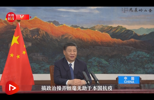 習(xí)近平說:“堅(jiān)持同舟共濟(jì),倡導(dǎo)團(tuán)結(jié)合作。人類榮辱與共、命運(yùn)相連。我們要共克時(shí)艱,堅(jiān)決反對各種政治化、標(biāo)簽化、污名化的企圖。搞政治操弄絲毫無助于本國抗疫,只會(huì)擾亂國際抗疫合作,給世界各國人民帶來更大傷害。”