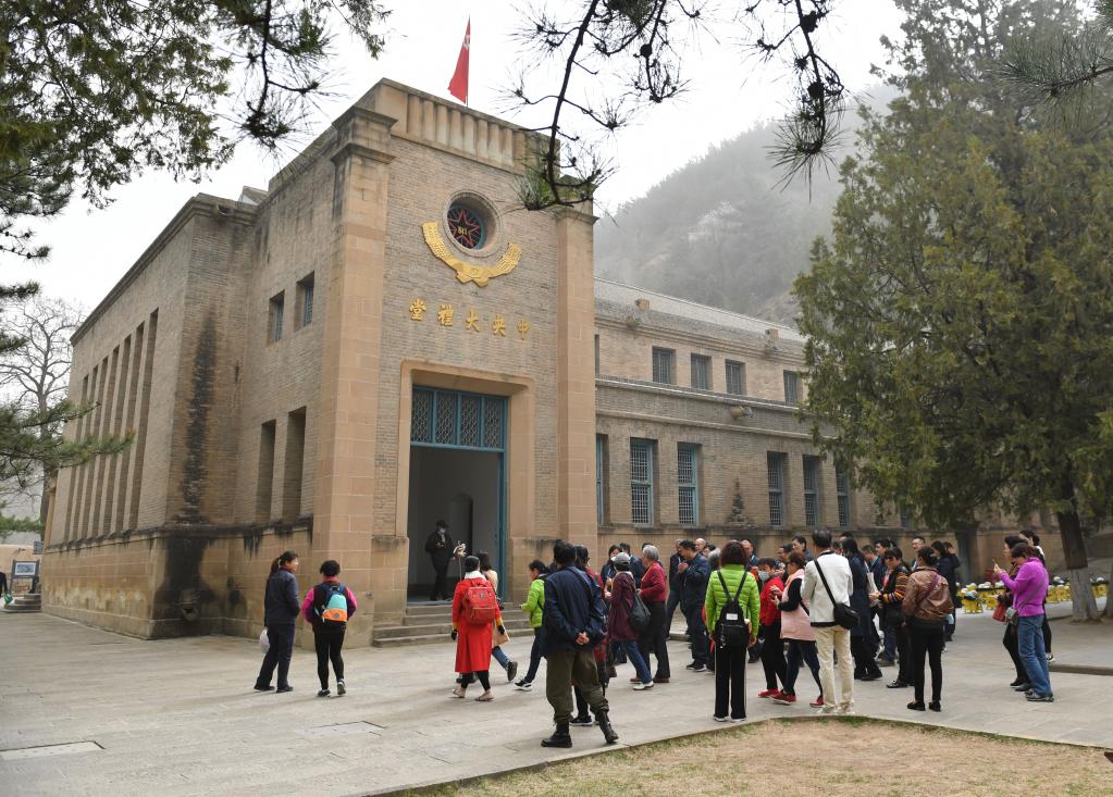 3月28日,參觀者在陜西延安楊家?guī)X革命舊址參觀。新華社記者張博文攝