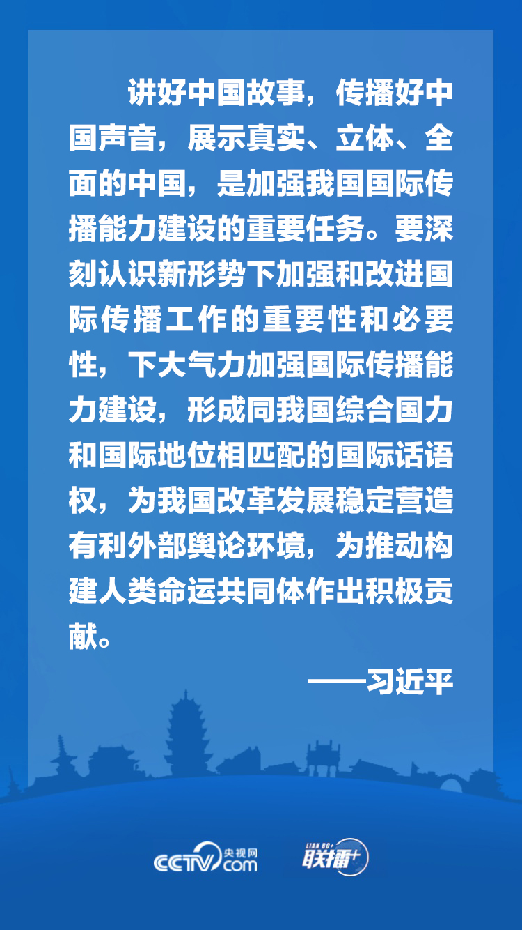 黨的十八大以來,我國大力推動國際傳播守正創(chuàng)新,理順內(nèi)宣外宣體制,打造具有國際影響力的媒體集群,積極推動中華文化走出去,有效開展國際輿論引導(dǎo)和輿論斗爭,初步構(gòu)建起多主體、立體式的大外宣格局,國際話語權(quán)和影響力顯著提升。面對新的形勢和任務(wù),應(yīng)如何加強(qiáng)我國國際傳播能力建設(shè)?央視網(wǎng)《聯(lián)播+》特梳理總書記講話要點,與您一起學(xué)習(xí)領(lǐng)悟。