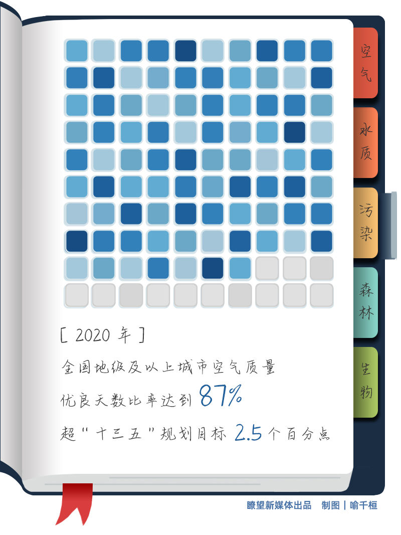 霧霾更少,空氣更清新。2020年全國地級及以上城市空氣質(zhì)量優(yōu)良天數(shù)比率達到87%,超過“十三五”規(guī)劃目標2.5個百分點;PM2.5未達標地級及以上城市年均濃度達到37微克/立方米,累計降低28.8%,超過“十三五”規(guī)劃目標10.8個百分點。