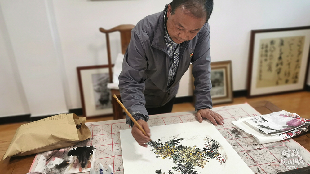 △55歲的魏真盈是社區(qū)書畫室的國畫指導(dǎo)老師。(總臺央視記者覃思、馬超拍攝)