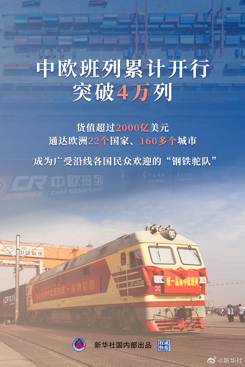 推進(jìn)“一帶一路”建設(shè)工作領(lǐng)導(dǎo)小組辦公室20日召開中歐班列統(tǒng)一品牌五周年工作座談會(huì)。截至目前,中歐班列累計(jì)開行突破4萬列,合計(jì)貨值超過2000億美元,打通了73條運(yùn)行線路,通達(dá)歐洲22個(gè)國(guó)家160多個(gè)城市。新冠肺炎疫情發(fā)生以來,中歐班列累計(jì)向歐洲發(fā)運(yùn)1199萬件防疫物資。2011年3月,首趟中歐班列從重慶發(fā)出開往德國(guó)杜伊斯堡,開啟中歐班列創(chuàng)新發(fā)展的序章。2016年6月20日,統(tǒng)一品牌中歐班列首達(dá)歐洲(波蘭)儀式在波蘭華沙舉行。(記者安蓓,海報(bào)設(shè)計(jì)楊軼群)