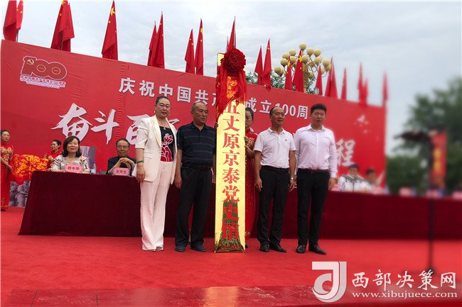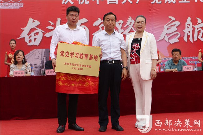 西部決策網(wǎng)訊(記者李乃斌)2021年6月23日,由中央廣播電視總臺(tái)——中央新影發(fā)現(xiàn)之旅頻道匠心精神欄目組、中國共產(chǎn)黨陜西京泰集團(tuán)總支部委員會(huì)主辦,陜西省紡織行業(yè)協(xié)會(huì)、寶雞市民營企業(yè)協(xié)會(huì)、寶雞市女企業(yè)家協(xié)會(huì)、寶雞市老年科技工作者協(xié)會(huì)協(xié)辦的“奮斗百年路 啟航新征程”慶祝中國共產(chǎn)黨成立100周年大會(huì)暨黨史館授牌儀式,在陜西五丈原京泰黨史館廣場(chǎng)舉行。