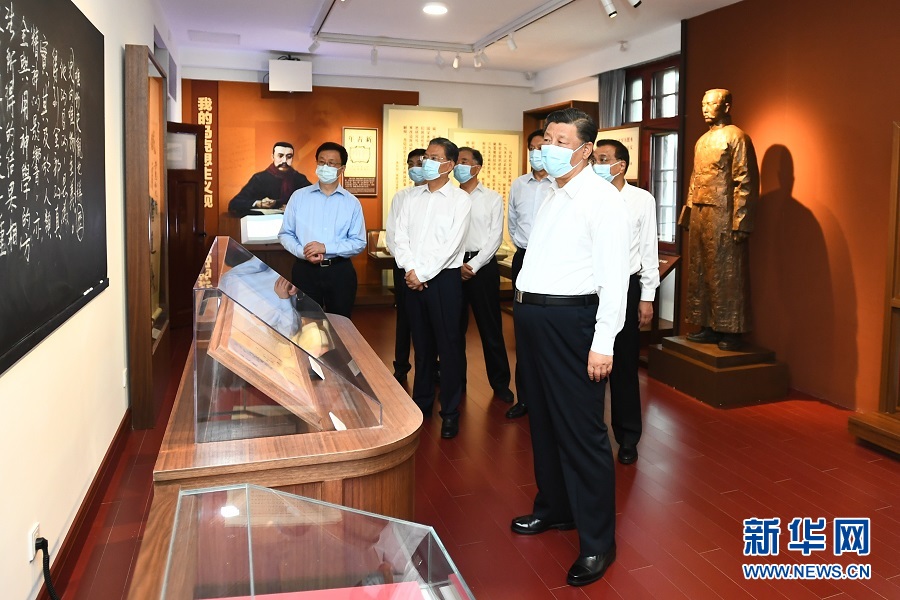 6月25日,中共中央政治局就用好紅色資源、賡續(xù)紅色血脈舉行第三十一次集體學(xué)習(xí)。這次集體學(xué)習(xí)采取參觀和討論相結(jié)合的形式,這是習(xí)近平、李克強(qiáng)、栗戰(zhàn)書、汪洋、王滬寧、趙樂際、韓正等在北大紅樓參觀“光輝偉業(yè) 紅色序章——北大紅樓與中國共產(chǎn)黨早期北京革命活動(dòng)主題展”。新華社記者 謝環(huán)馳 攝