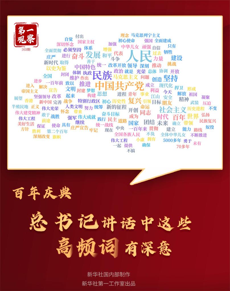 我們通過詞云大數(shù)據(jù)梳理講話中的高頻詞發(fā)現(xiàn),出現(xiàn)86次“人民”、55次“民族”、54次“中國共產(chǎn)黨”……這充分印證中國共產(chǎn)黨的初心和使命,就是為中國人民謀幸福、為中華民族謀復(fù)興。
