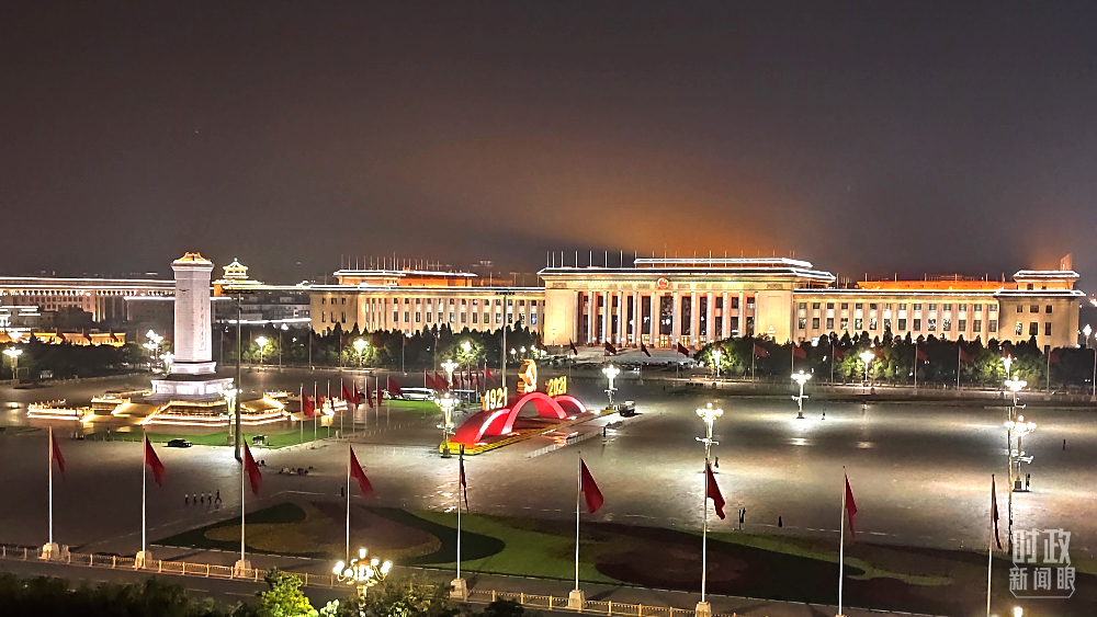 △7月6日,夜幕中的人民大會(huì)堂和天安門廣場(chǎng)。(總臺(tái)央視記者薛冠南拍攝)
