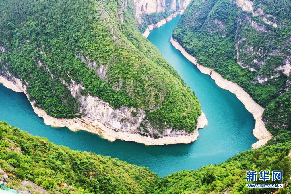 重慶市巫山縣魚(yú)頭灣景象(2020年5月26日攝,無(wú)人機(jī)照片)。長(zhǎng)江經(jīng)濟(jì)帶沿江11省市大力推進(jìn)生態(tài)環(huán)境整治,“共抓大保護(hù)、不搞大開(kāi)發(fā)”,共同舞動(dòng)高質(zhì)量發(fā)展的“綠色長(zhǎng)龍”。新華社記者 王全超 攝