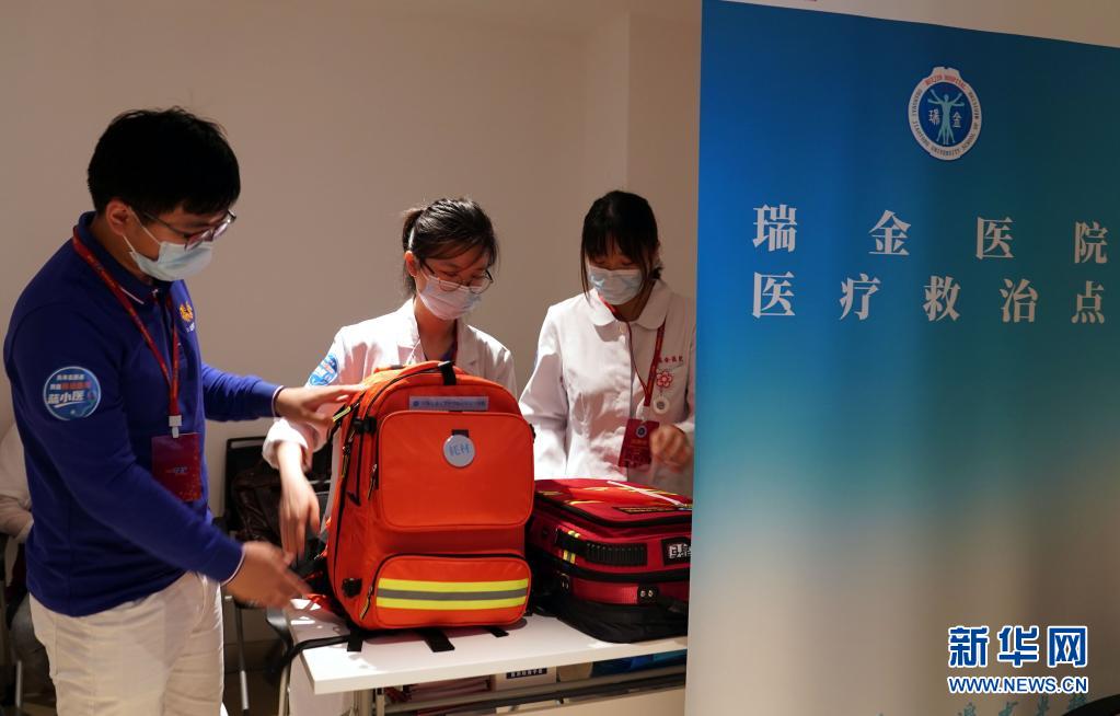 上海交通大學醫(yī)學院附屬瑞金醫(yī)院的醫(yī)護人員擔當志愿者,在中共一大紀念館設(shè)立醫(yī)療救治點,提供醫(yī)療保障任務(7月11日攝)。新華社記者 劉穎 攝