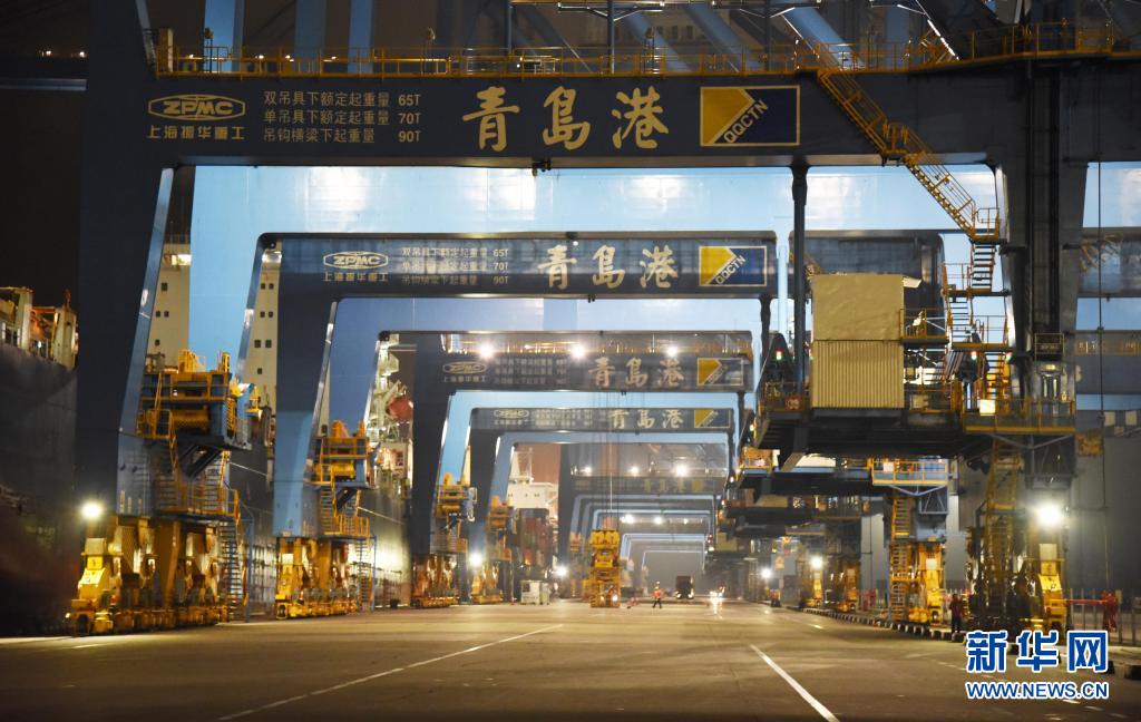 這是7月1日凌晨拍攝的山東港口青島港全自動(dòng)化集裝箱碼頭。新華社記者 王凱 攝