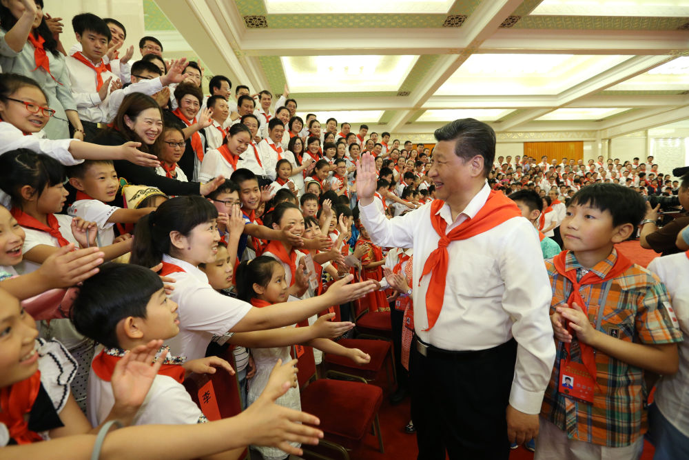 ↑2015年6月1日,習近平在北京人民大會堂親切會見中國少年先鋒隊第七次全國代表大會全體代表。