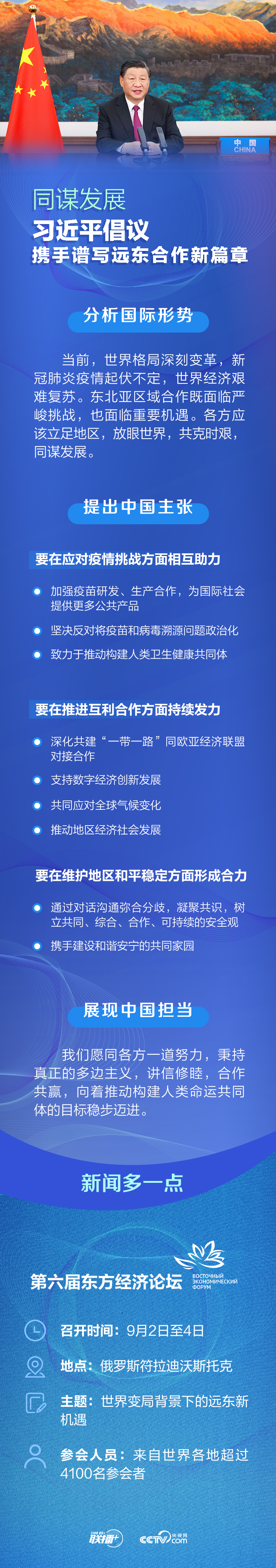 聯(lián)播+9月3日,習近平主席應邀以視頻方式出席第六屆東方經(jīng)濟論壇全會開幕式并發(fā)表題為《共克時艱,同謀發(fā)展 攜手譜寫遠東合作新篇章》的致辭。
